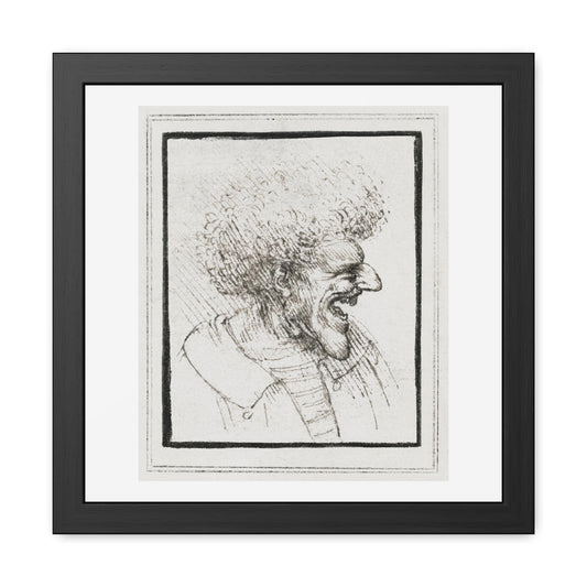 Caricature of a Man with Bushy Hair (circa 1495) by Leonardo da Vinci from the Original, Wooden Framed Print