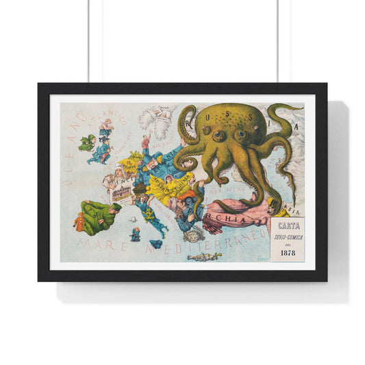Cartoon Map of Europe (1878) from Il Papagallo no 15 'La Piovra Russa' by Augusto Grossi, from the Original, Framed Art Print