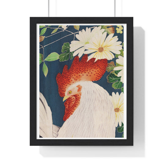 Rooster Pattern on Kimono Fabric, from the Original, Framed Art Print