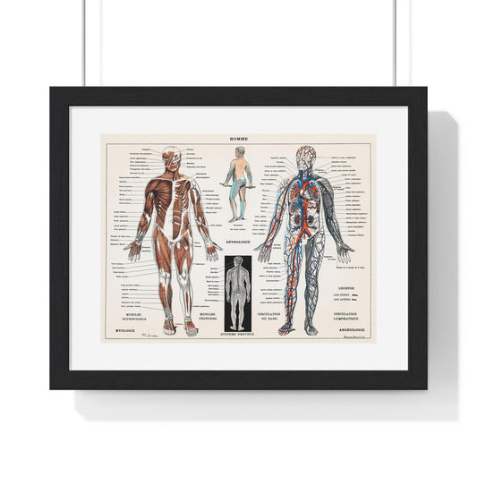 Antique illustration of a Human Nervous system and Muscular System (1900) by Claude Augé, from the Original, Framed Art Print