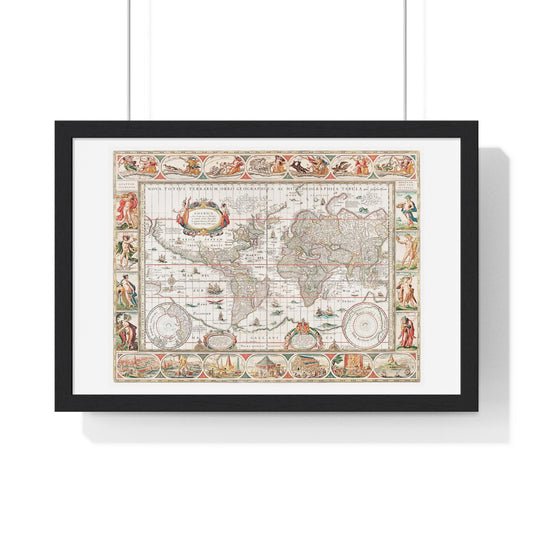 Map of the World 'Nova Totius Terrarum Orbis Geographica ac Hydrographica' (1635–1650) by Guiljelmo Blaeu, from the Original, Framed Art Print