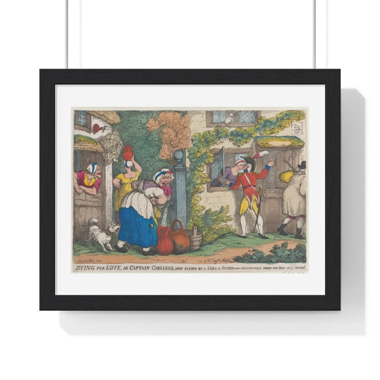 Dying for Love, or Captain Careless, Shot Flying by a Girl of Fifteen who Unexpectedly Popped Her Head out of a Casement (1810-1811), from the Original, Framed Art Print