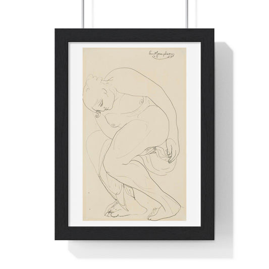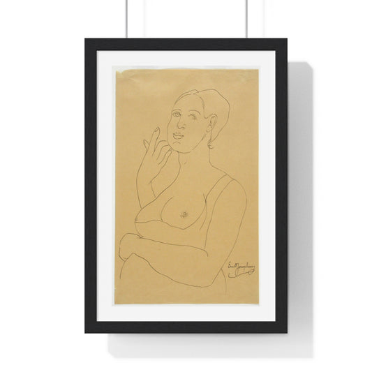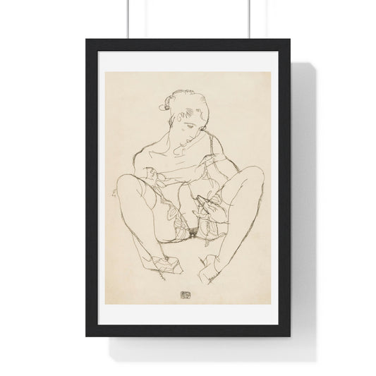 Seated Woman in Chemise (1914) Line Art Drawing by Egon Schiele, from the Original, Framed Print