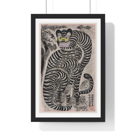 Talismanic Tiger (20th Century) Vintage Japanese Painting, from the Original, Framed Art Print