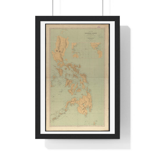 Vintage Map of Philippines and Adjacent Seas from Material of the English and Batavian Governments (1898) from the Original, Framed Art Print
