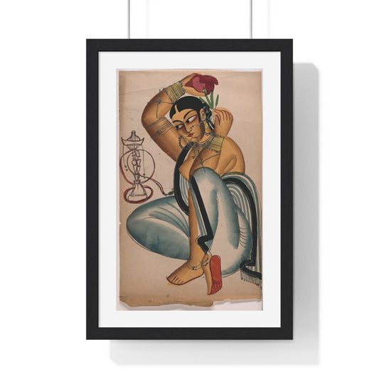 Courtesan Arranging a Flower in her Hair, Indian Artist, 1800s, from the Original, Framed Art Print