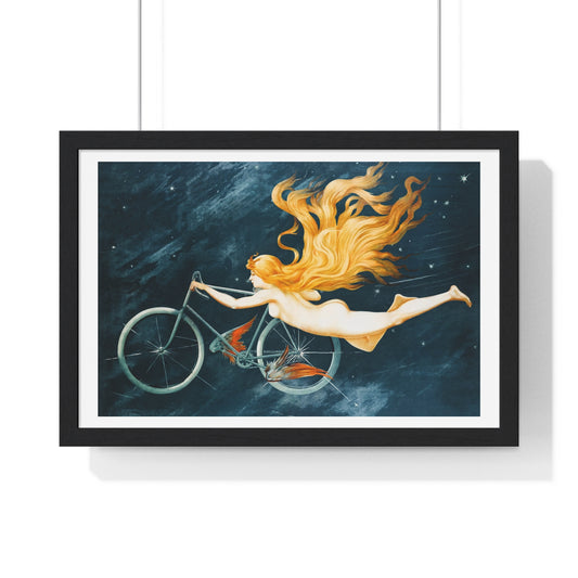With Pedal Power My Bike Takes Flight into the Boundless Light! III 'Designed by AI' Framed Art Print