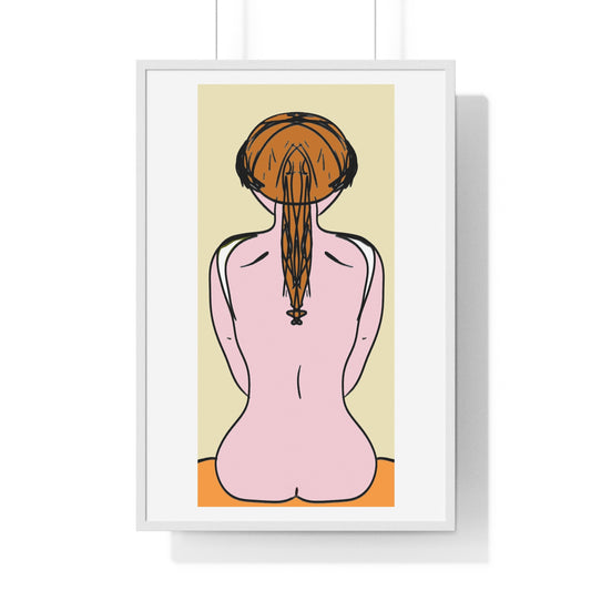 Woman From the Rear, Pencil Sketch 'Designed by AI', Framed Art Print