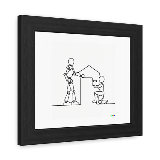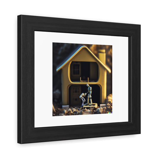 Macro 35mm Photograph Of Human And Robot Building A House 'Designed by AI' Wooden Framed Print