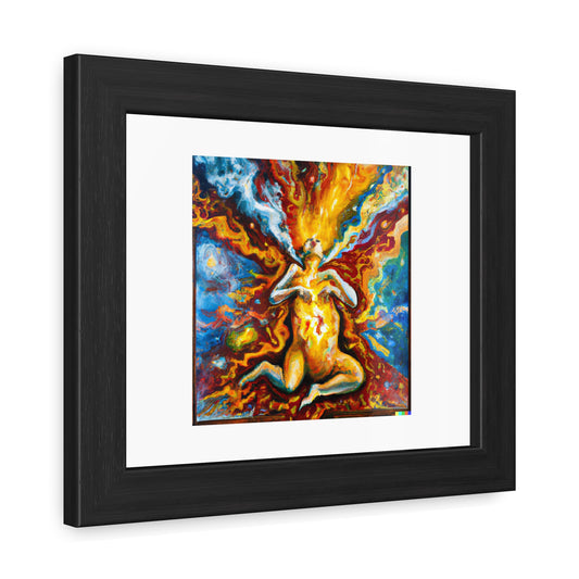 Expressive Painting Of Woman Giving Birth Depicted As An Explosion Of A Nebula 'Designed by AI' Wooden Framed Print