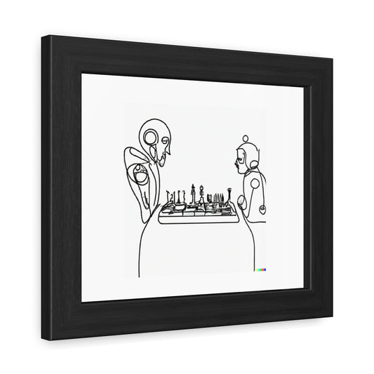 Human And Robot Playing Chess Single Line Art 'Designed by AI' Wooden Framed Print