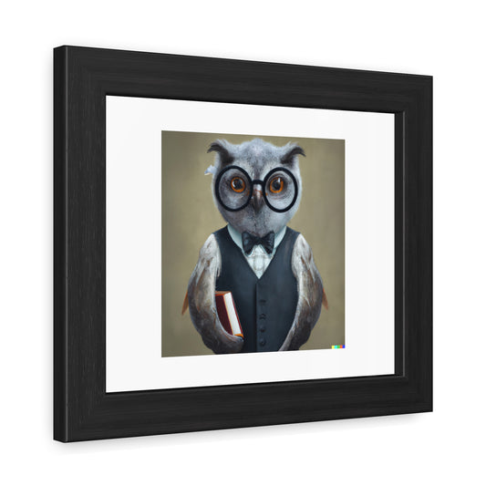 Stern Looking Owl As A Librarian Digital Art 'Designed by AI' Wooden Framed Print