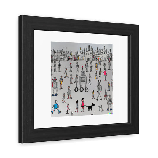 Robots and Humans in the Style of Lowry 'Designed by AI' Wooden Framed Print