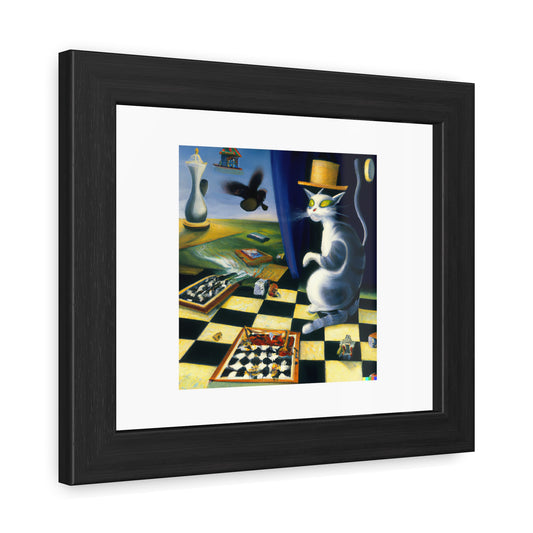 Cat Playing Chess In The Surrealist Style 'Designed by AI' Wooden Framed Print
