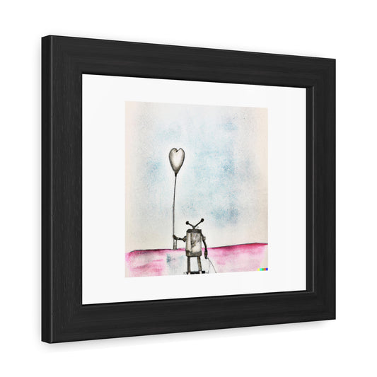 Abstract Pencil And Watercolour Art Of A Lonely Robot 'Designed by AI' Wooden Framed Print