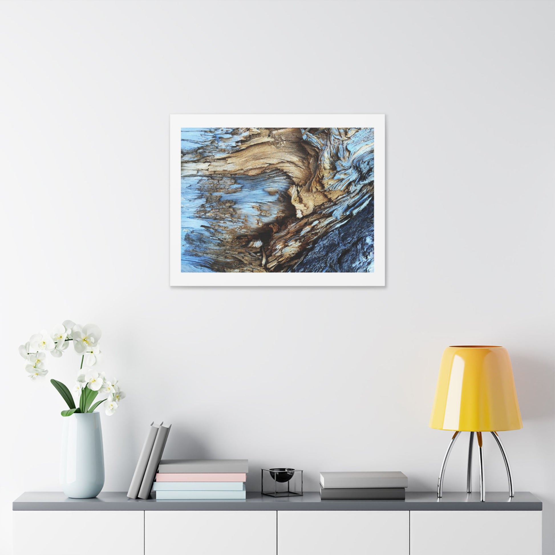 Abstract Painting of Light Brown and Blue Tree Bark, Canvas Art Print