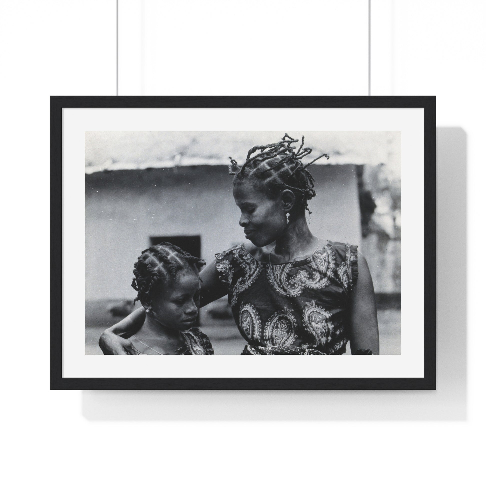 Benin, A Woman and Child with Braided Hairstyles, Vintage Photograph by Herbert Meyerowitz, Framed Print