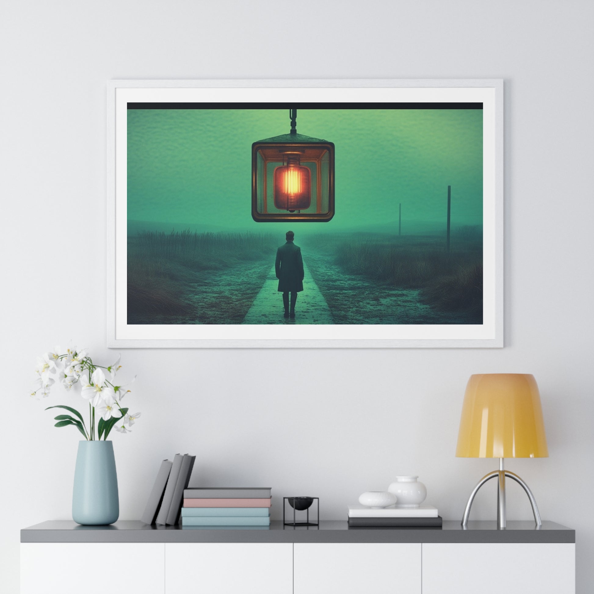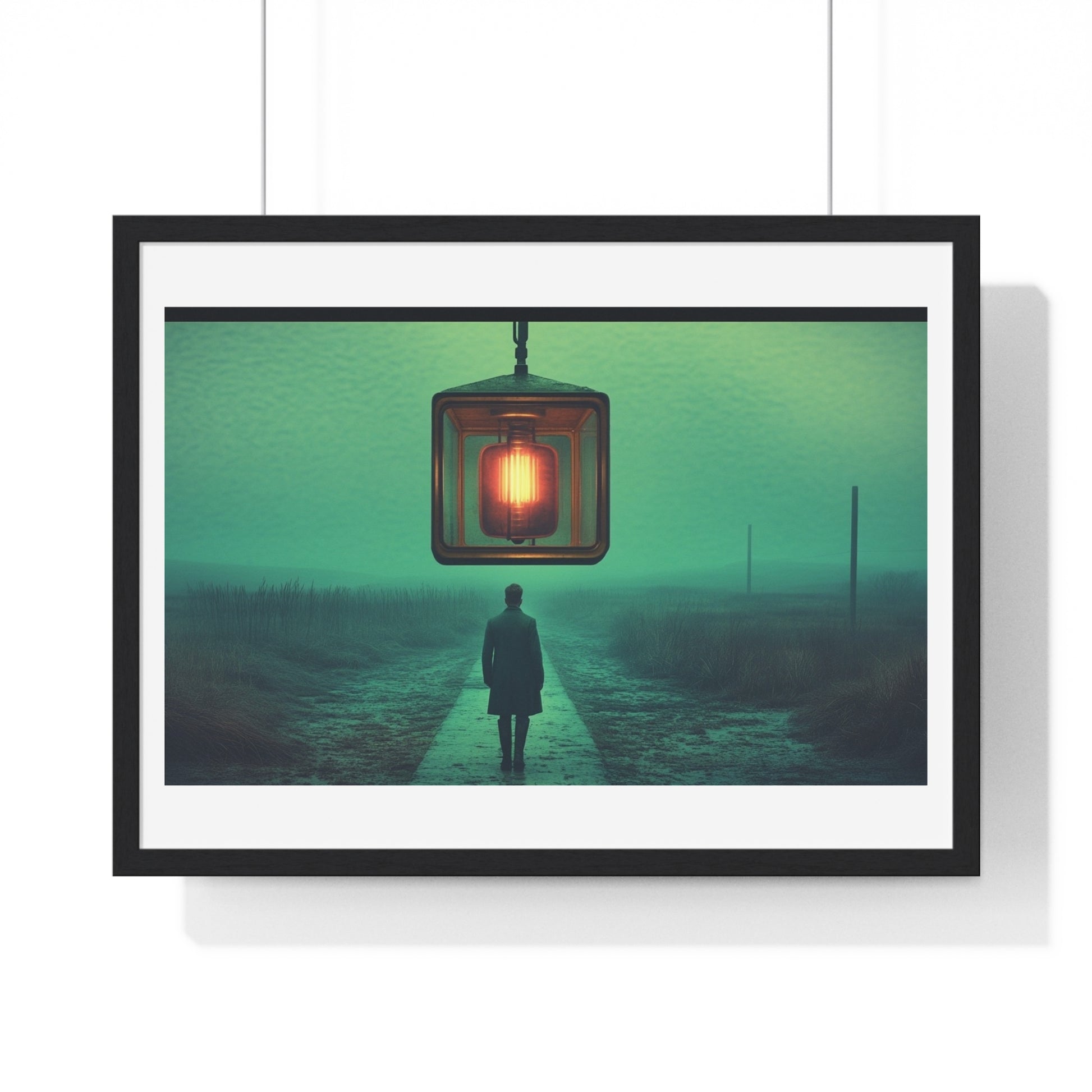Cinematic Dystopia, Photographic Art 'Designed by AI' Framed Print