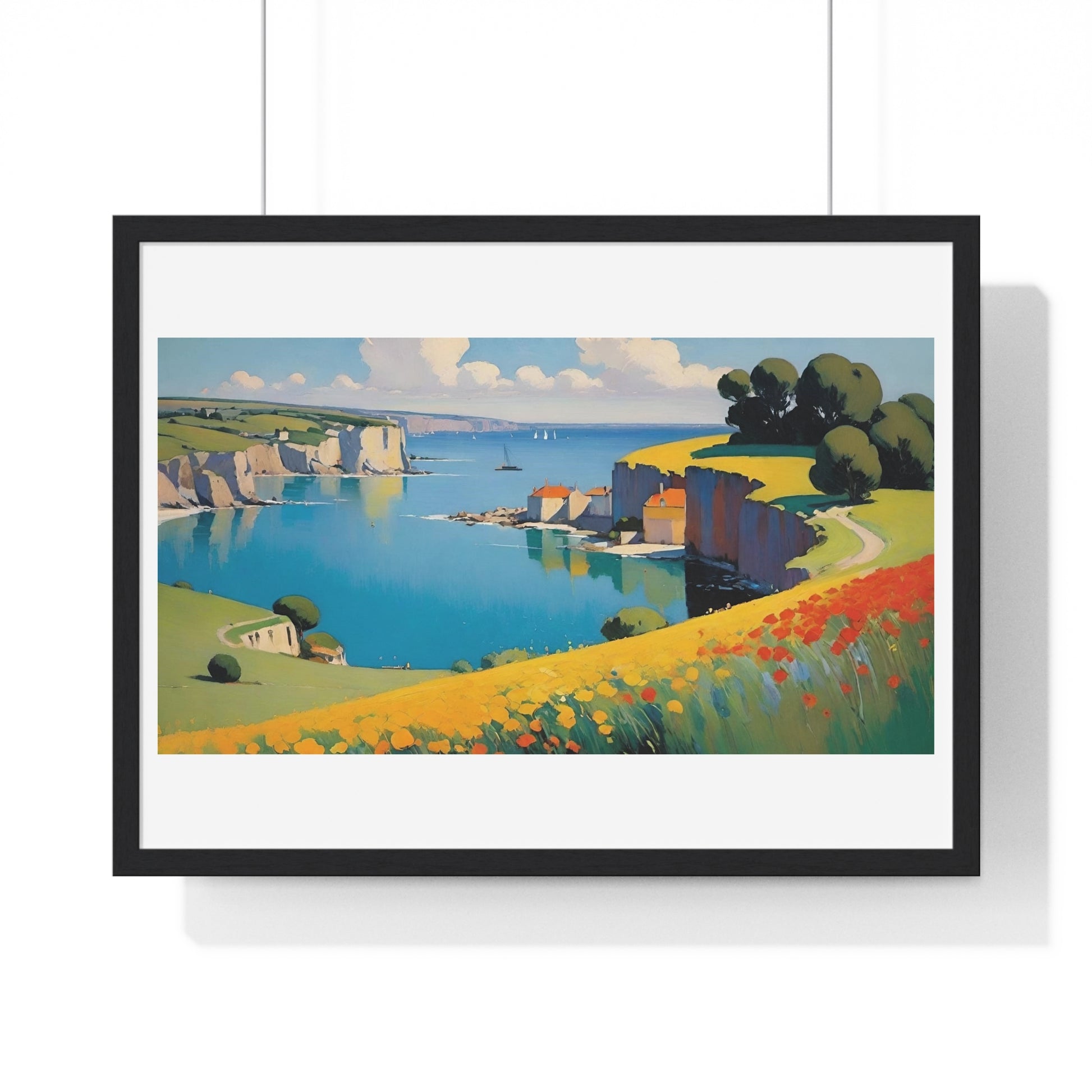 Cornish Harbour in Springtime 'Designed by AI' Framed Art Print