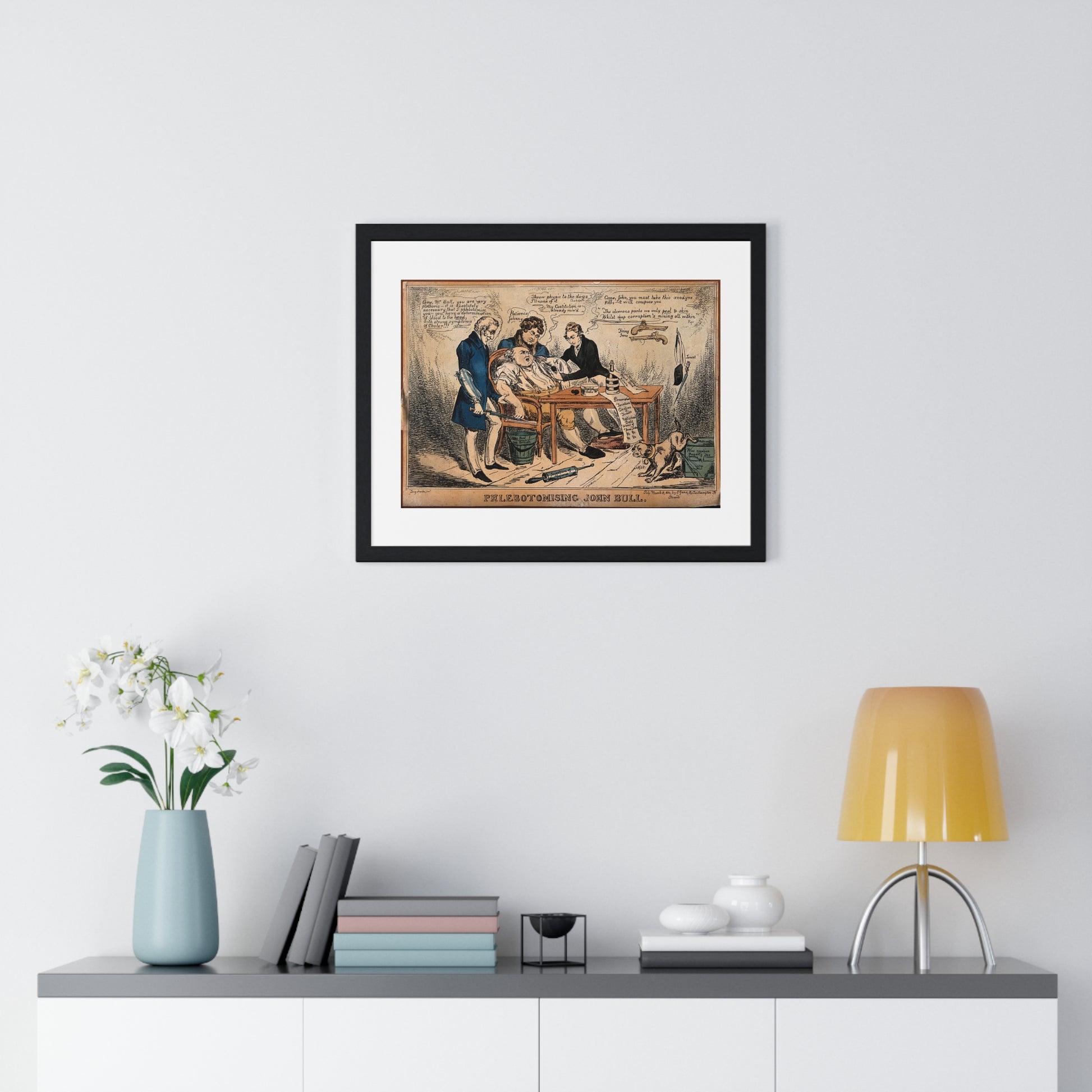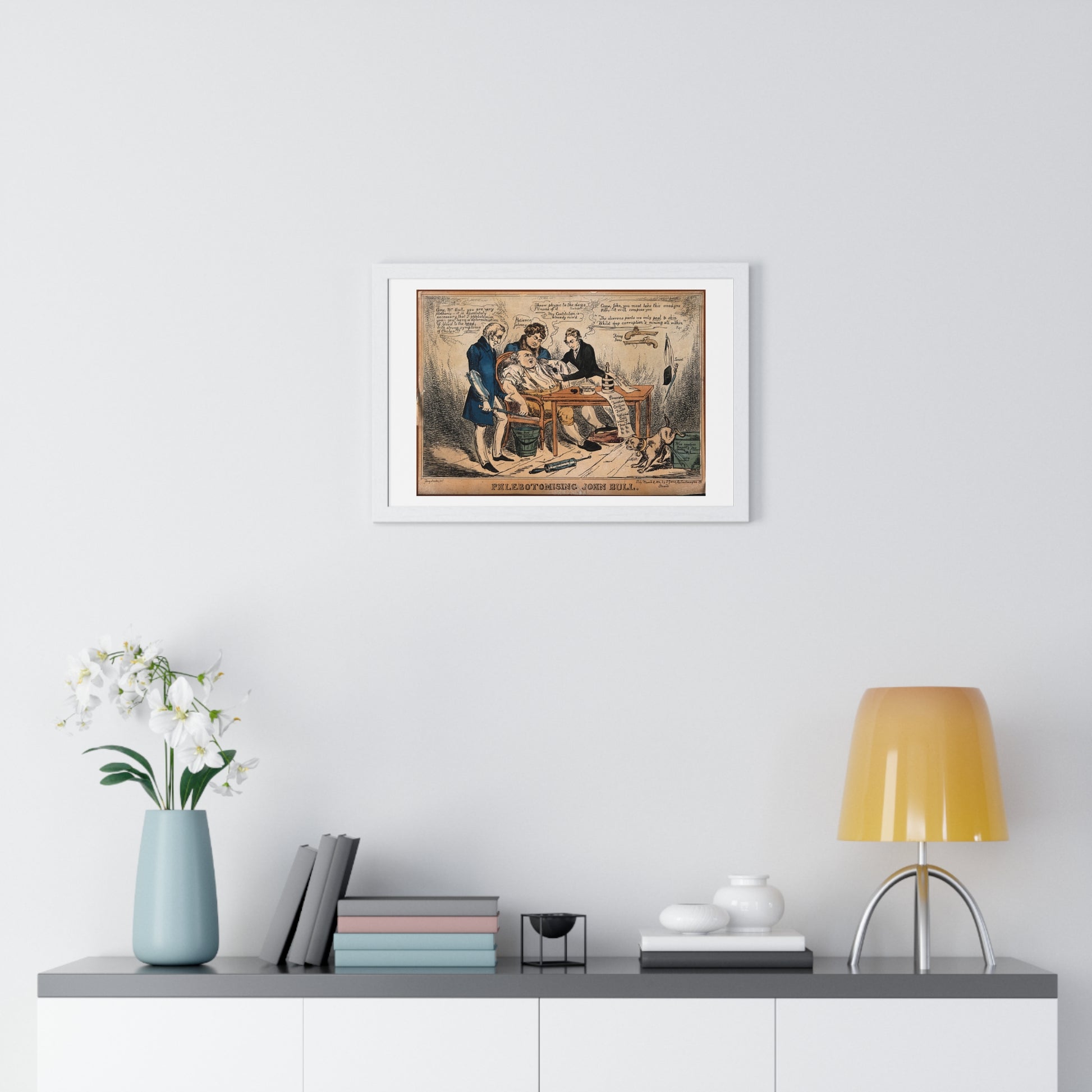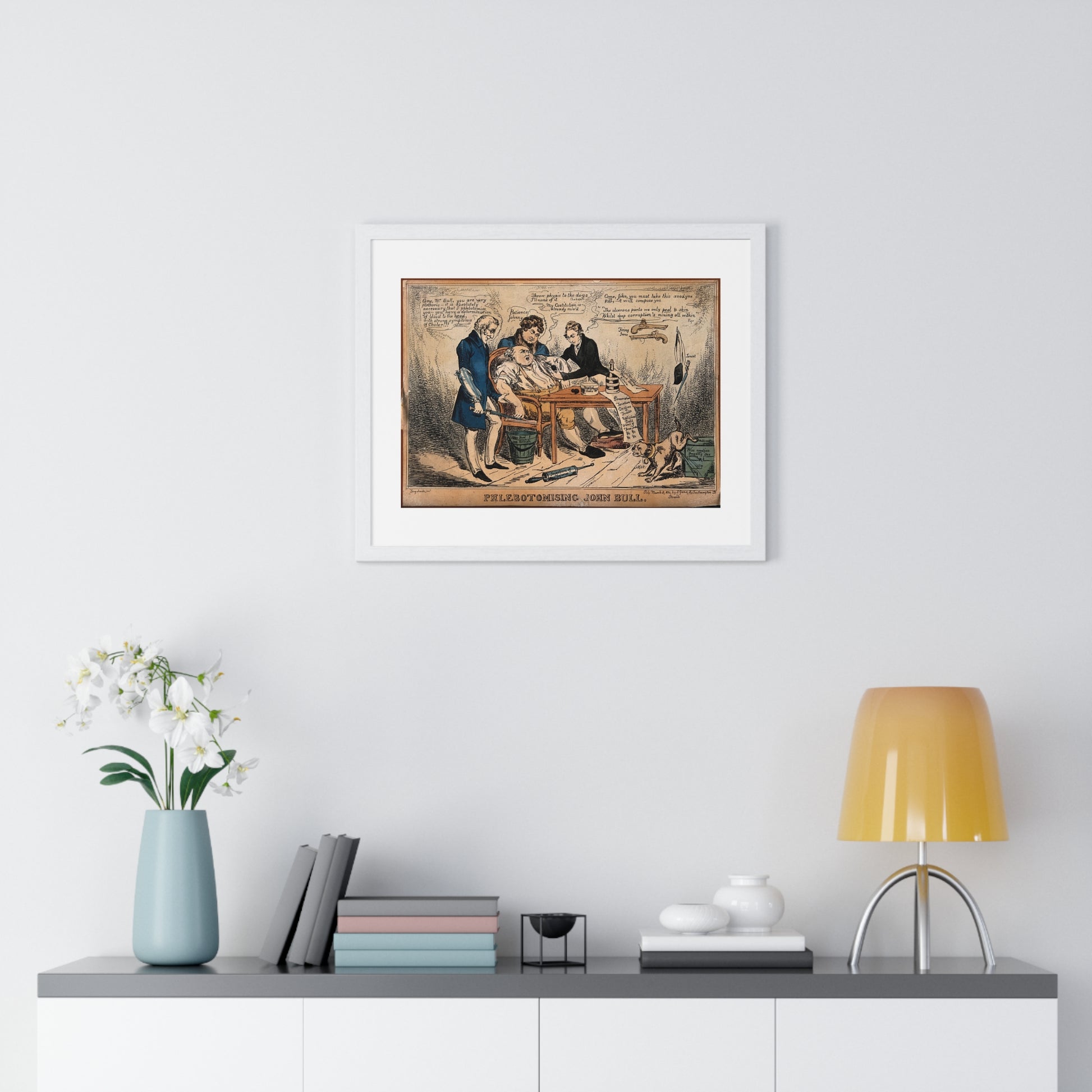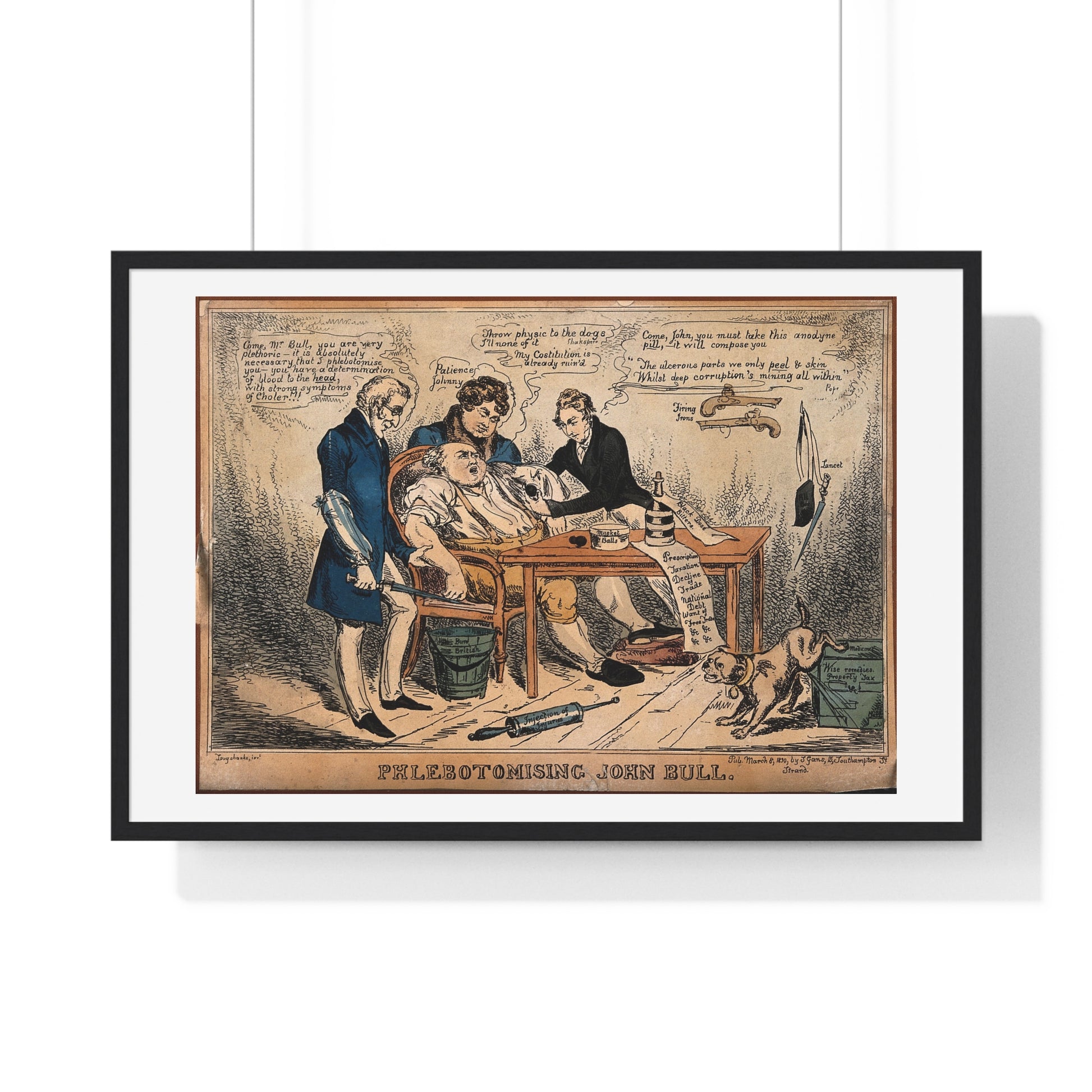 John Bull About to be Bled by Three Doctors, Representing Britain's Budget Manipulated by the Cabinet (1830) by John Phillips, from the Original, Framed Print