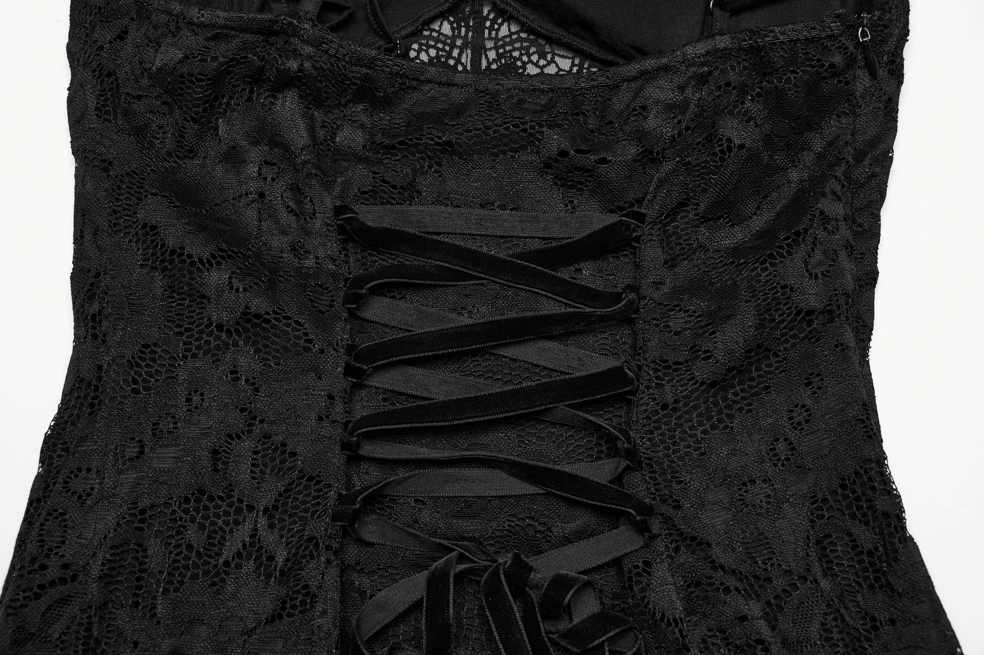 Get ready to make a statement with the Punk Rave Aviva Lace Dress! Made of elastic lace and knitted fabric, this dress is both elegant and comfortable. The deep v-neck and exquisite lace stitching add a touch of charm, while the ruffled high slit design adds a dynamic edge. And with an adjustable drawstring in the back, you can customize the fit to your liking. Available in black.
