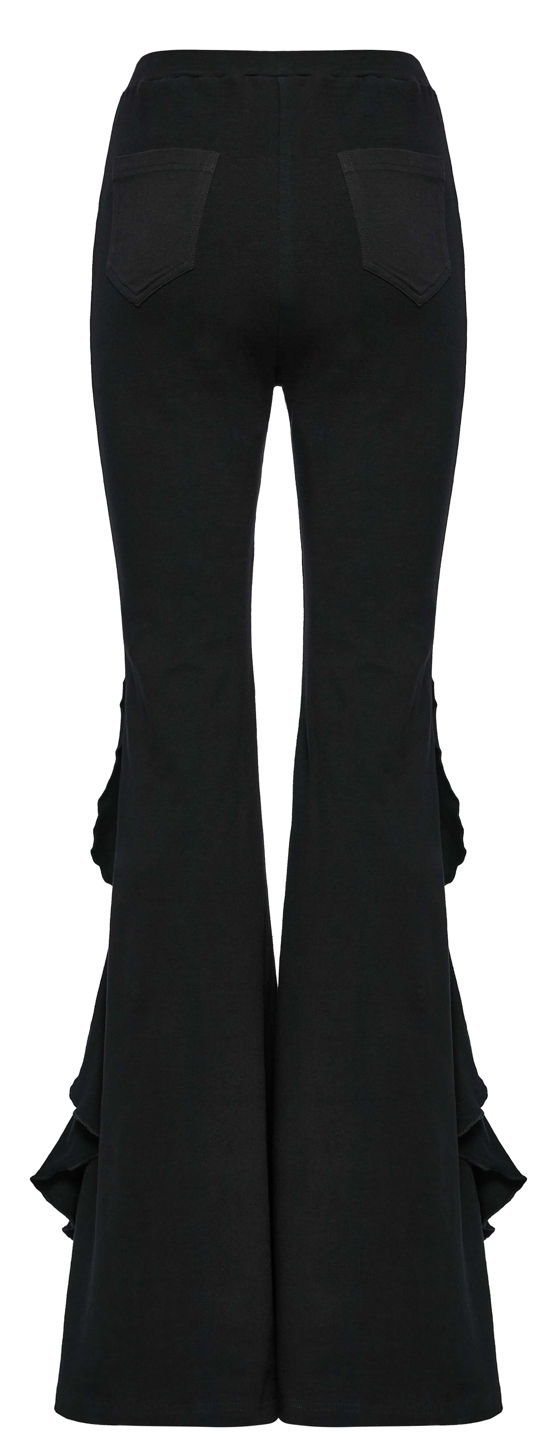These Punk Rave Veda Flared Pants are a must-have for any edgy fashionista. Made of micro elastic knitted fabric, they provide a comfortable fit while the retro ruffled edge fish tail pants legs add a unique touch. Say goodbye to boring pants and hello to visually elongated leg shapes with these tight flared pants. Step up your style game now!