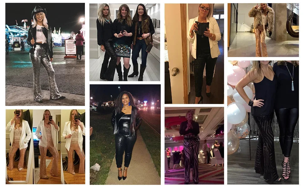 Here are our unique design sequin printed pants, comfortable, stretchy and versatile for casualwear or dazzling evening wear.