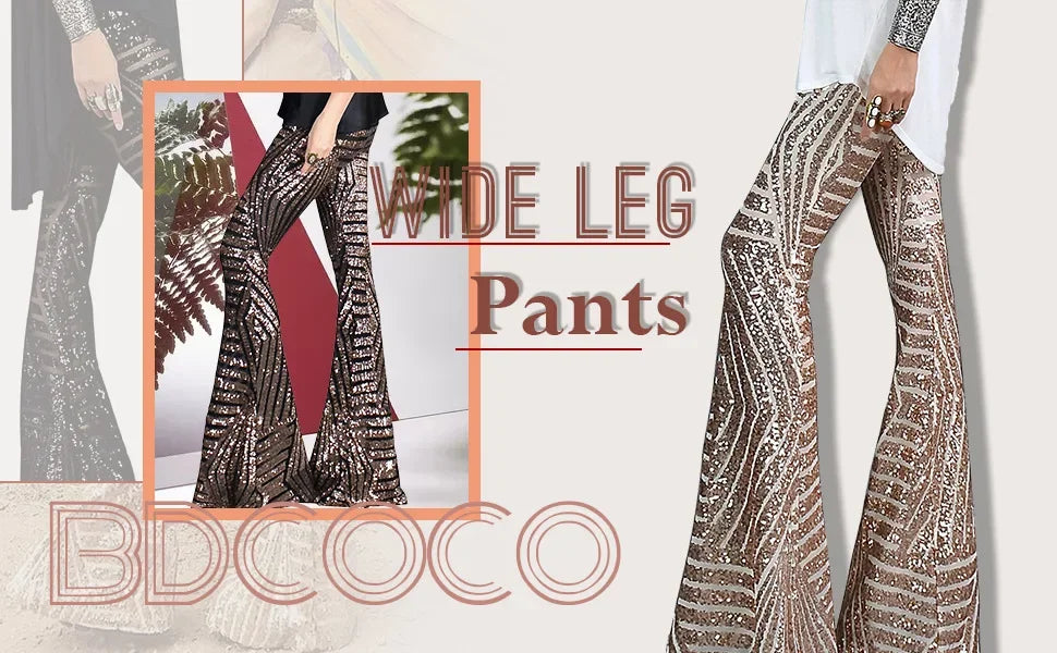 Vireous Women's Sparkling Sequin Slacks, Loose Mid-Waist Trousers