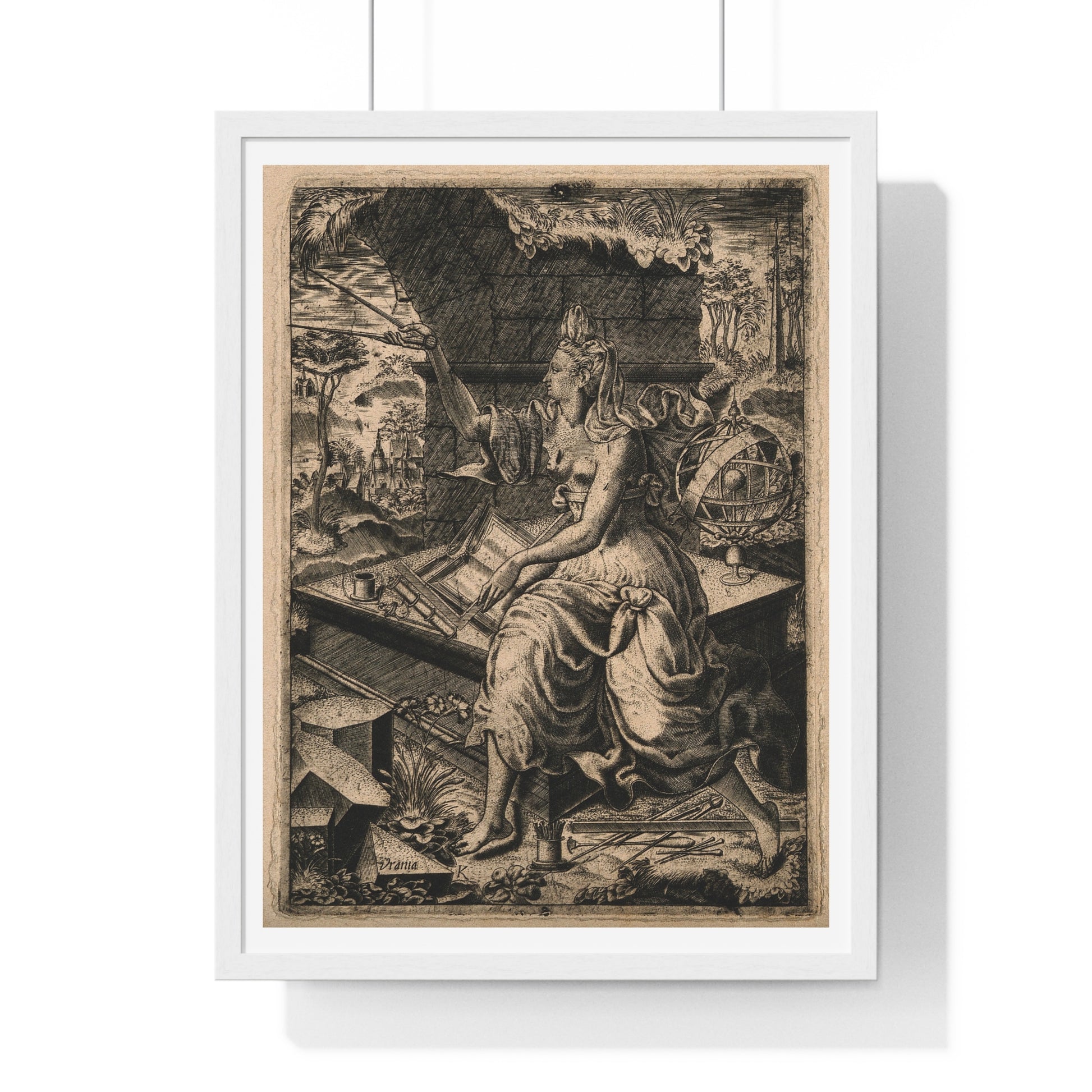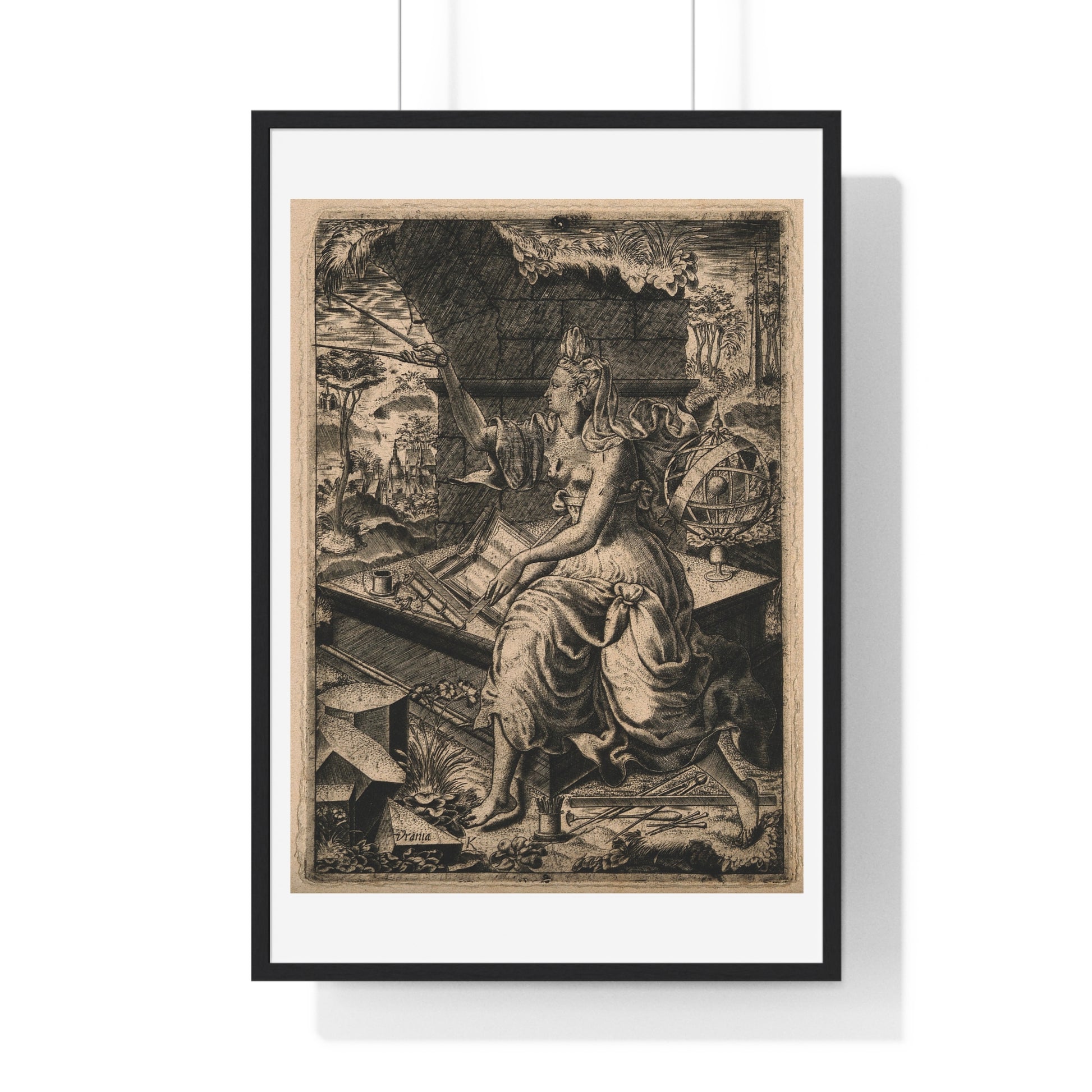 Urania, the Muse of Astronomy (17th Century) Engraving by Lucas Kilian, from the Original, Framed Print