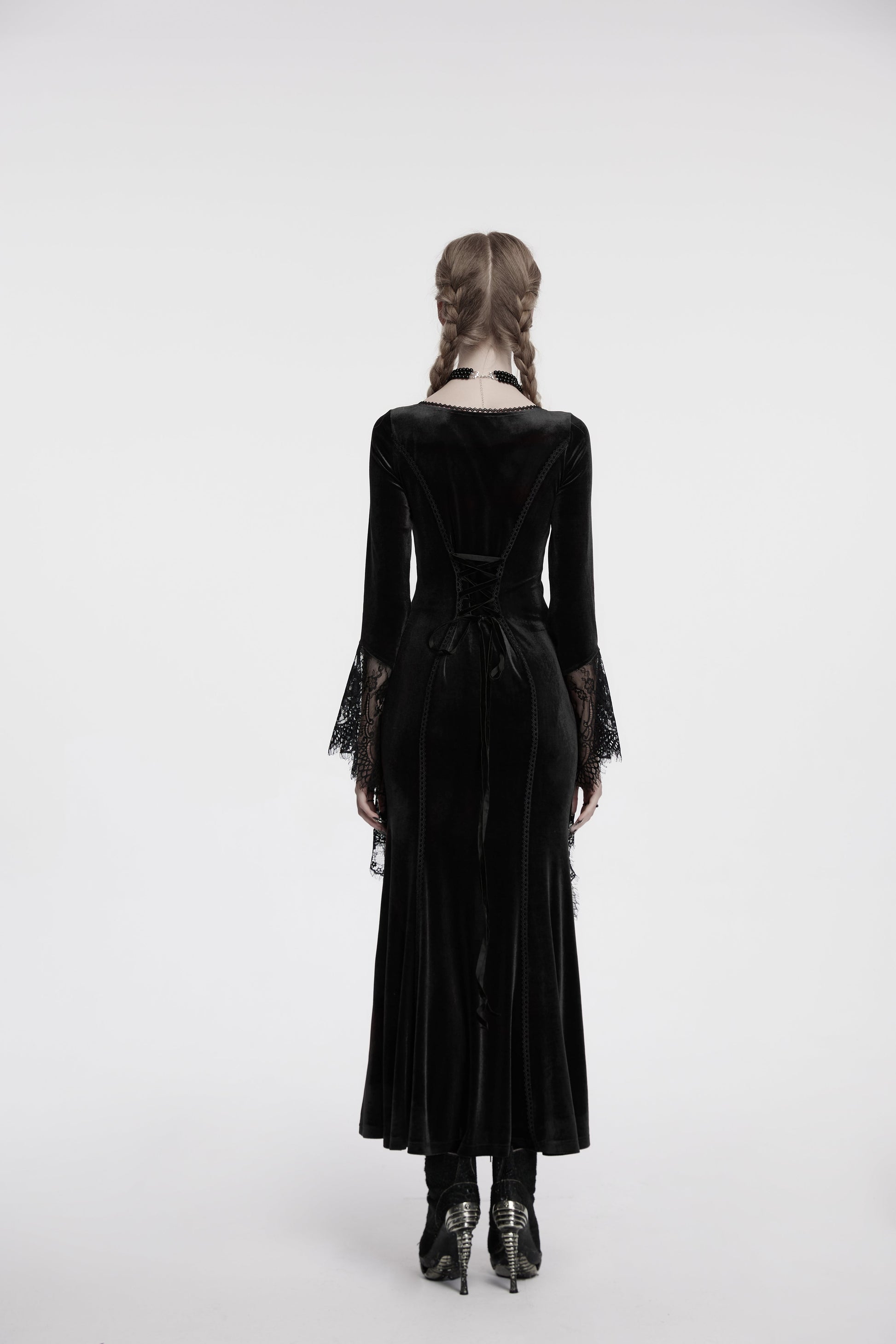 Channel the elegance of the night with the Punk Rave Isolde Velvet Lace Sleeve Dress, a luxurious goth masterpiece designed for those who crave drama and allure. Crafted from high-quality elastic velvet, this close-fitting gown skims your curves while the flowing skirt adds a regal silhouette.