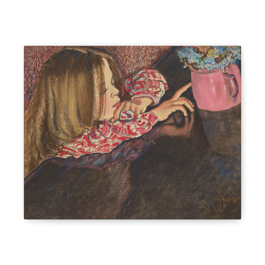 Girl With a Vase of Flowers (1902) by Stanislaw Wyspianski, Art Print from the Original on Canvas