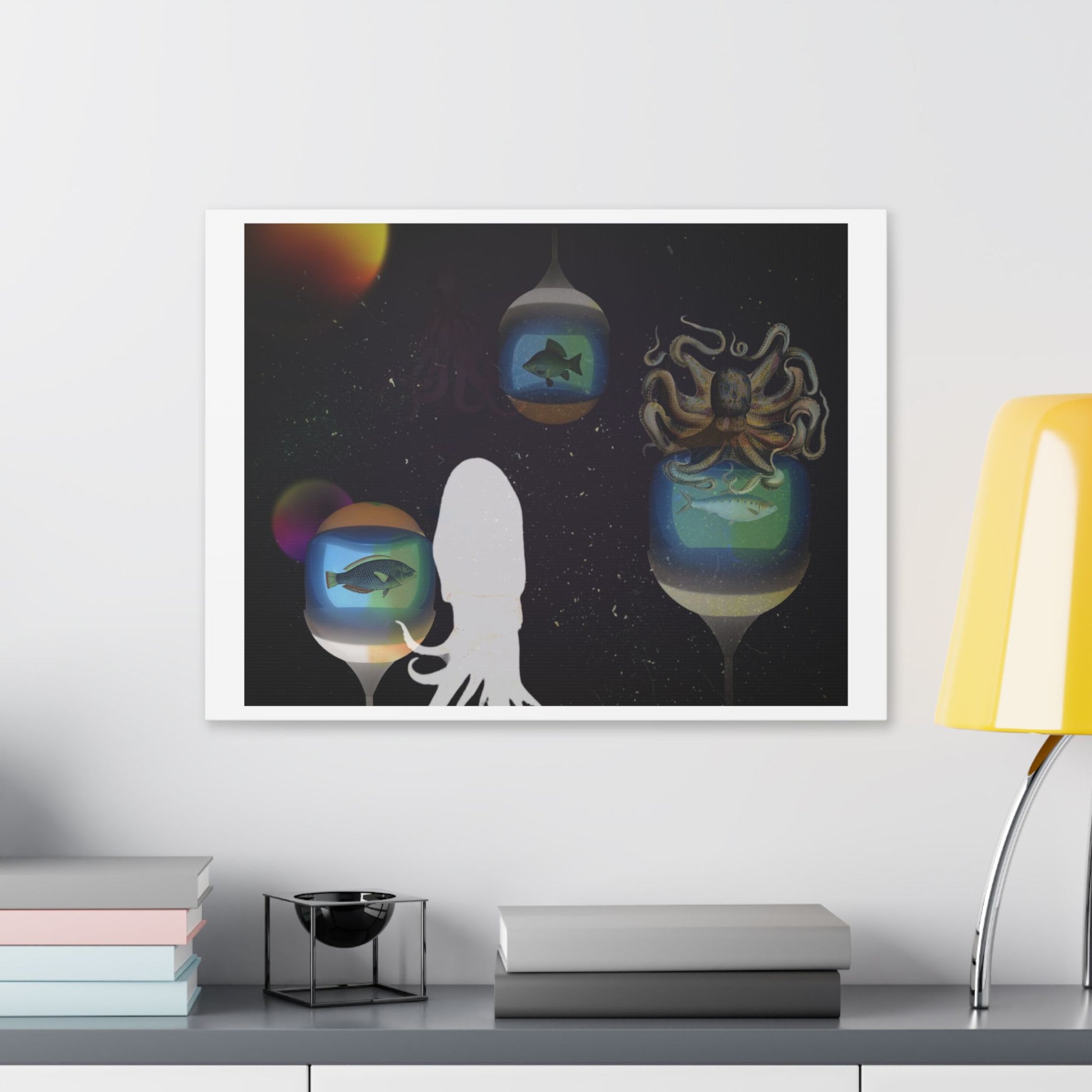 Visitors at the Exotic Earth Acquarium 'Designed by AI' Canvas Art Print