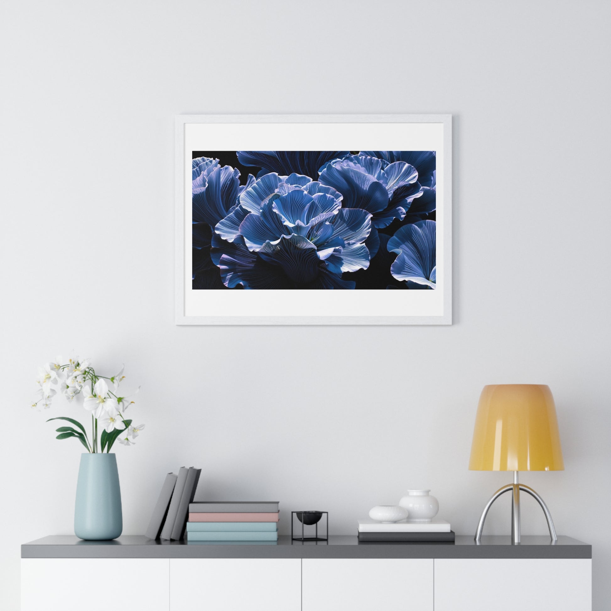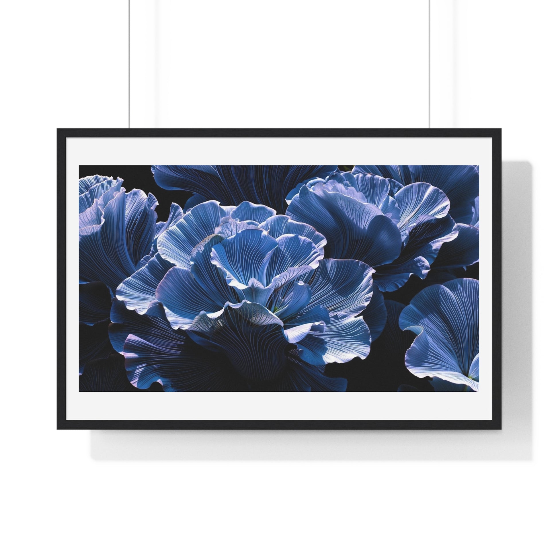 Iris Petals, Blue Vibrant Art 'Designed by AI' Framed Print