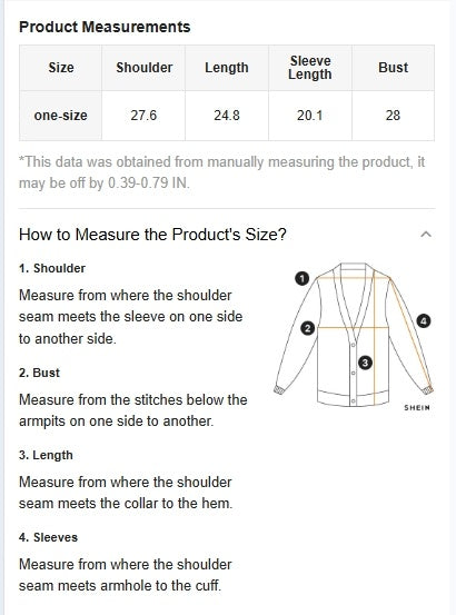 Shoulder 27.6 inches, Length 24.8 inches, Sleeve Length 20.1 inches, Bust 28.0 inches