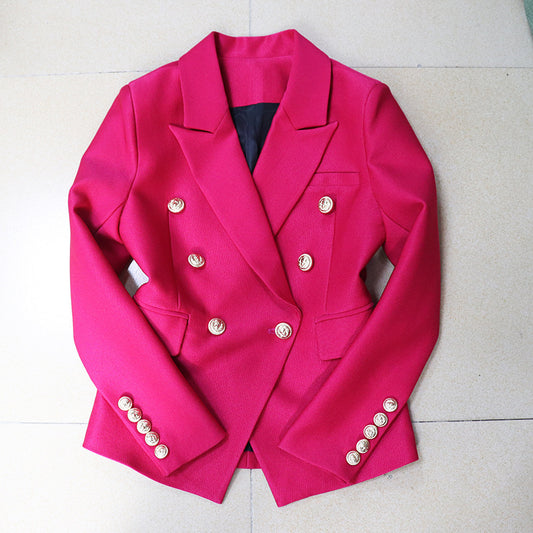 Vireous Rose Red Tailored Women's Double-Breasted Jacket