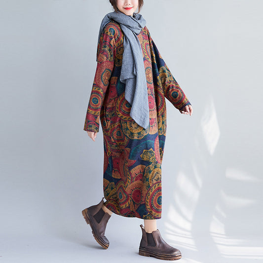 Vireous Fashion Printed V-Neck Long-Sleeve Dress, Spring and Autumn Collection