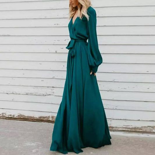 Vireous Long Sleeve Elegant Crossover 'Celtic' Long Dress