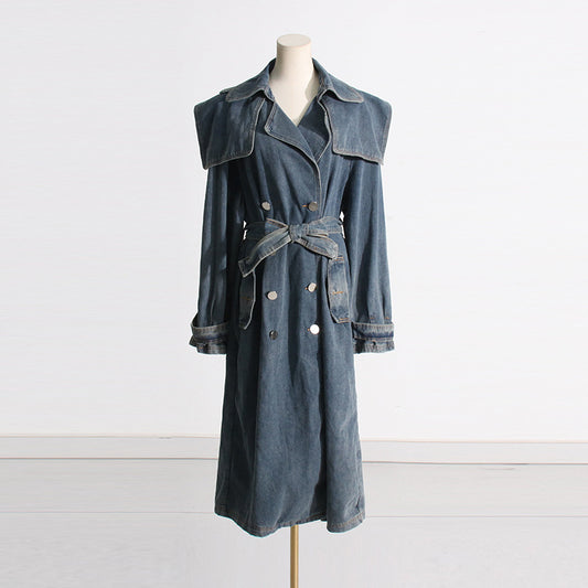 Vireous Lace-Up Waist-Tight Women's Denim Coat