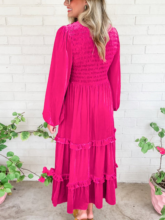 Vireous Nature Leaf Print Comfortable Pleated Fashion Dress