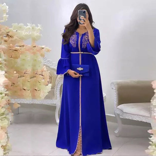 Vireous Fashion Pearl-Embroidered Robe Evening Dress