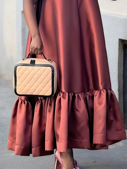 Plus-Size Ruffle Hem Elegant Summer Midi Dress in Dusky Pink