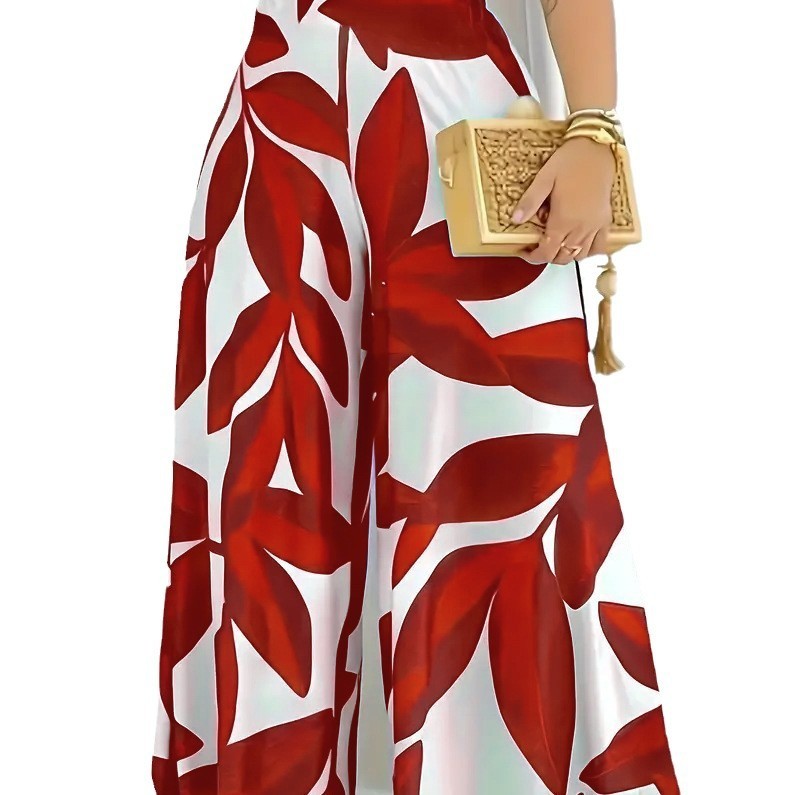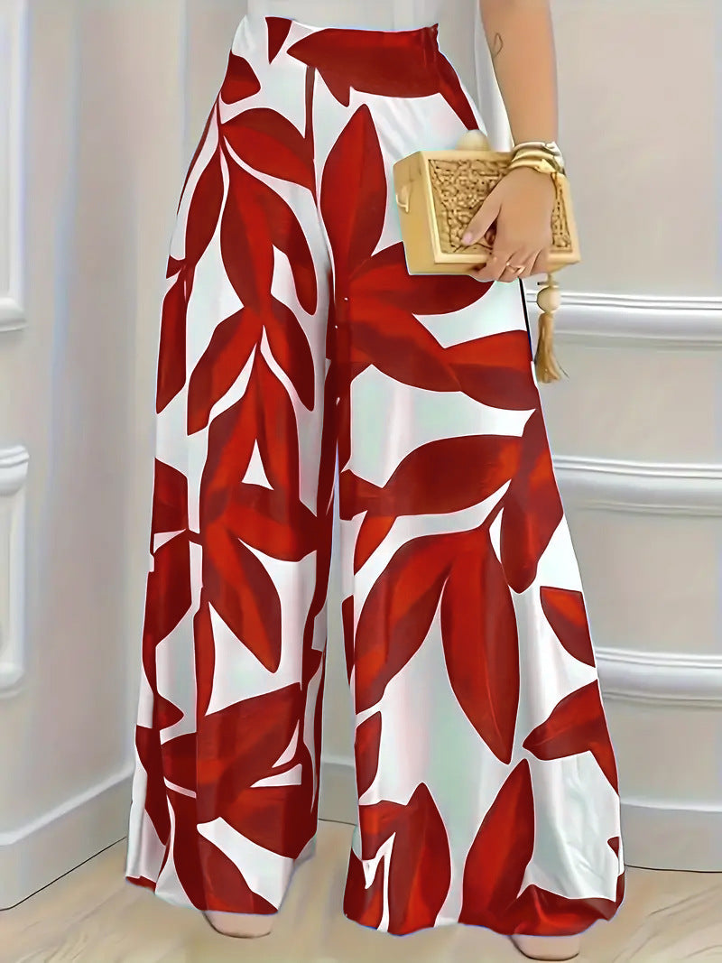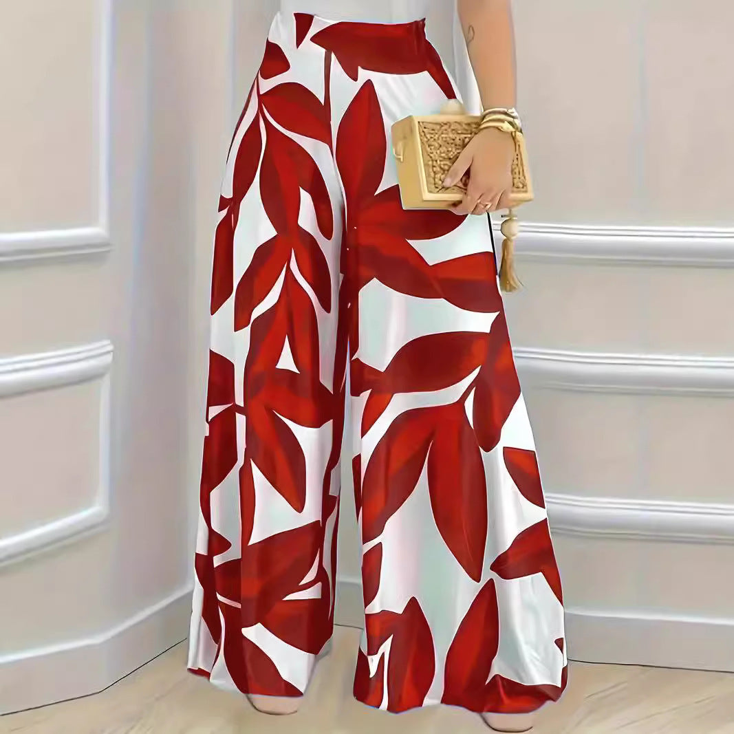 Vireous Organic Print High-Waist Fashion Comfortable Wide-Leg Pants